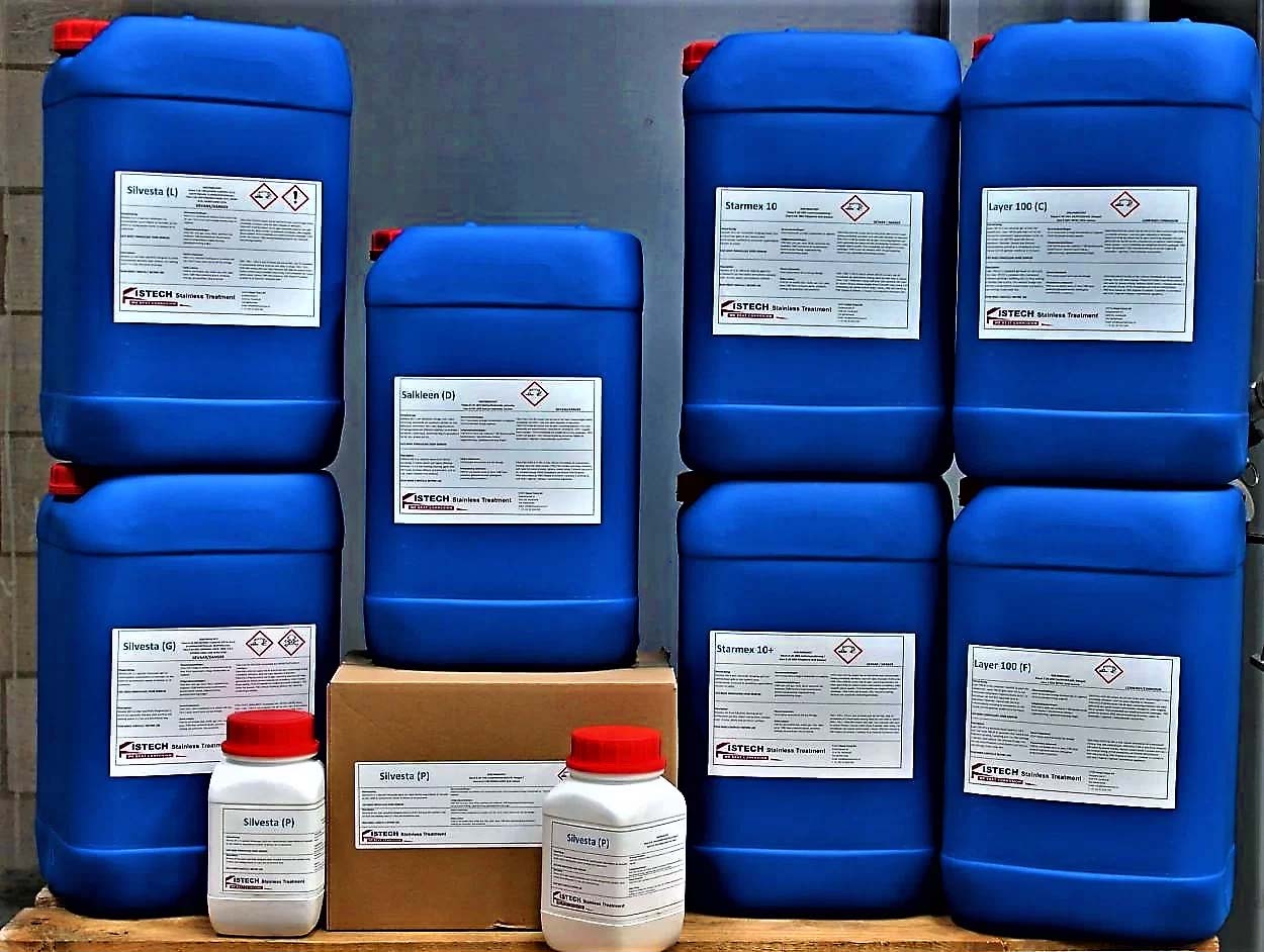 Naast onze dienstverlening op het gebied van slijpen, polijsten, beitsen en passiveren op locatie, leveren wij vanuit onze eigen fabriek beitsproducten waaronder badbeits voor beitsbaden.